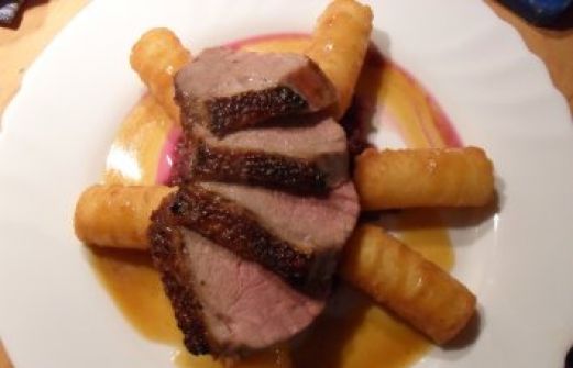 Zutaten für Personen Rezept mit Bild: Barbarie Entenbrust mit Orangen-Honigsoße Bild einstellen 2 Stück Entenbrustfilet 2 Stück Zwiebel 1 Stück Karotte 2 Stück Orangen 1 Stück Knoblauch 1 Zweig Rosma [...]