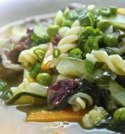 Minestrone alla Genovese Zutaten 100 g Weisskohl 50 g Grüne Bohnen 2 Kartoffeln 2 Möhren 2 Stangen Lauch 2 Tomaten 1 Stange Staudensellerie 2 Zuccini 1 Zwiebel 1 Knoblauchzehe 1 Bund Petersilie einige Borretschblätter 100 g frische rote Bohnen 1/2 Tasse Olivenöl 1 Stü [...]