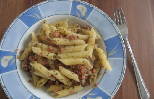 Menge Zutat 1 Pk Penne 1 Pk Schinkenwürfel 1 St große Zwiebel etwas Olivenöl etwas Salz etwas getrockneten Oregano [...]