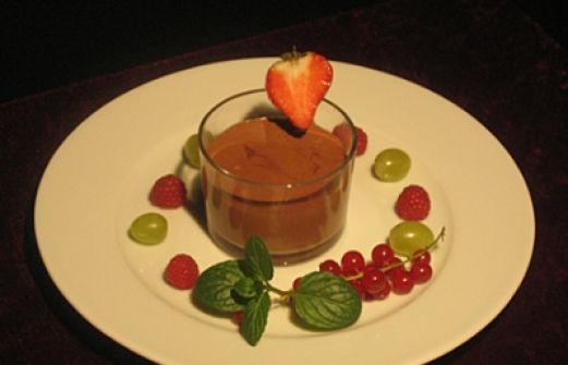 Menge Zutat 100 g dunkle Schokolade 2 Eier 20 g Zucker 150 g geschlagene Sahne etwas Minze oder Waldmeister gemischte Früchte z [...]