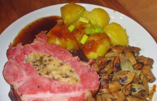 wurde schön saftig und bekam einen guten Geschmack. Dazu pikante Champignons