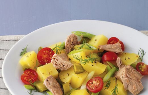 Kartoffelsalat mit Thunfisch Zutaten 350 g kleine festkochende Kartoffeln ½ Bund Frühlingszwiebeln 2 Gewürzgurken (+ 2-3 EL Gurkenwasser) 1 Dose Thunfisch im eigenen Saft, 80 g Abtropfgewicht 3 EL Zitronensaft 2 TL Olivenöl Salz, Pfeffer ½ Bund Dill 100 g Cocktailtomaten g [...]
