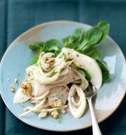 Avocado-Birnen-Salat Zutaten 1 EL gehackte Walnüsse 3 EL Weißweinessig 1 EL Aceto balsamico bianco Salz Pfeffer 2 EL Olivenöl 2 EL Walnussöl 100 g Pecorino oder Parmesan 2 reife Avocados 2 reife Birnen 8 in Öl eingelegte getrocknete Tomaten 50 g Rucola guk:similarit [...]