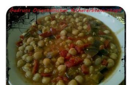 Zutaten für Personen Rezept mit Bild: Eintopf: Orientalischer Kichererbseneintopf Bild einstellen 1 große Dose Kichererbsen 0.5 mittelgroße Aubergine, gewürfelt 2 rote Spitzpaprika, gewürfelt Gemüsebrü [...]