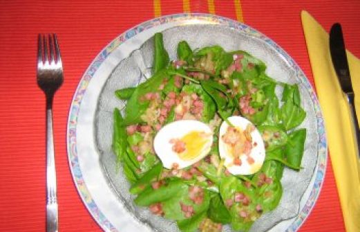 Zutaten für Personen Rezept mit Bild: Spinatsalat mit Ei und Speck Bild einstellen 100 g Spinat frisch 50 g Speck gewürfelt 2 Stück Eier hartgekocht 100 ml Gemüsebrühe 1 Teelöffel Dijon Senf 1 Teelöf [...]