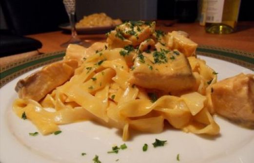 Zutaten für Personen Bild einstellen 400 g Lachs frisch 2 Stk. Schalotten 1 EL Tomatenmark 200 ml Weißwein trocken 200 ml Sahne 500 g Bandnudeln Rezept Zubereitung Bandnudeln mit Lachs Lachs in mundg [...]