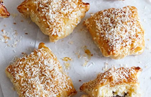 Schoko-Bananen-Taschen Zutaten FÜR DEN TEIG: 600 g selbst gemachter Blätterteig oder TK-Blätterteig (aufgetaut) FÜR DIE FÜLLUNG: 50 g Marzipanrohmasse ca. 100 ml Milch 2 EL Zucker (30 g) 1 Msp. Vanillemark 140 g Kokosraspel 1 EL Hartweizengrieß (10 g) 1 Ei (Größe M) 3 kleine [...]