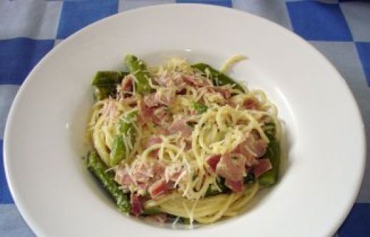 Zutaten für Personen Bild einstellen 1 Kilo grüner Spargel 3 Eier Salz und Pfeffer 100 gr. Parmesan 0.5 Bund Petersilie 1 Knoblauchzehe 100 gr. Gekochter Schinken 1 EL Butter 100 gr. Sahne 400 gr. Spaghett [...]