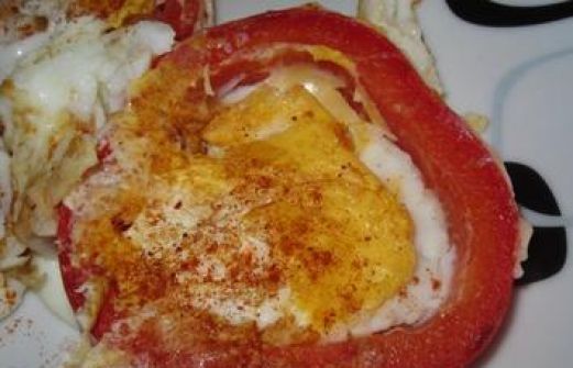 Zutaten für Personen Rezept mit Bild: Spiegelei in Paprika-Nest süß-sauer-scharf Bild einstellen 2 Stück Paprika-Ringe [siehe Foto!] 1 Klecks Zitronen-Öl [oder normales Öl...] 2 Stück Eier 1 Messerspitze Zim [...]