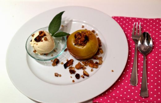 Zutaten: Apfel (Sorte eurer Wahl, hier Kronprinz Rudolf) Maroni (am besten schon gegart und geschält) Spekulatius Rosinen Rum Zimt, Lebkuchengewürz & Kardamom Vanilleeis bzw. Vanillesauce Ich bekomme von Esskastanien einfach nicht genug, daher gibt es heute ein [...]