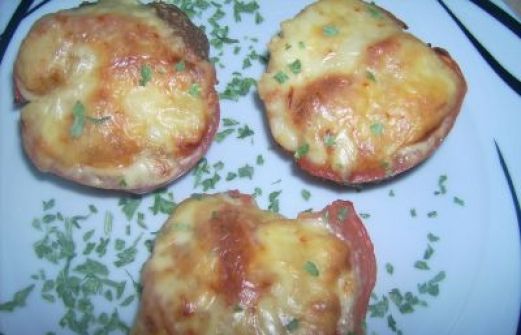 Menge Zutat 1 St hartes Brötchen 500 g Hackfleisch (halb und halb) 8 St Käsescheiben (Gouda oder Mozzarella) 2 St Tomaten etwas Salz und Pfeffer [...]