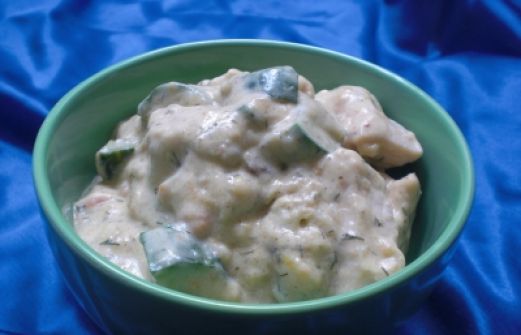 Menge Zutat 500 g Hähnchenbrustfilet 1 St Schlangengurke, klein 2 EL Schnittlauch, fein gehackt etwas Salz etwas Pfeffer etwas [...]