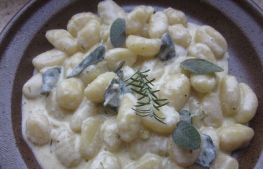Menge Zutat 1 Pk Gnocchi (aus dem Kühlregal) 1 Z Knoblauch 5 Bl Salbei 1 EL Mehl 2 EL Weißwein 250 ml Sahne [...]