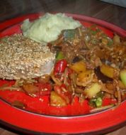 Menge Zutat etwas Öl 300 g Hähnchenbrust etwas Grillhähnchengewürz 1 kleine Dose Ananas 1 EL heller Sesam 1 EL schwarzer Sesam [...]