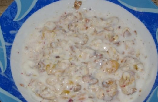 Menge Zutat 3 1/2 EL Früchtemüsli 1 EL Cornflakes 1 EL Haferflocken 1/2 EL Haferkleie 1 1/2 TL Honig 1 TL Sonnenblumenkerne [...]