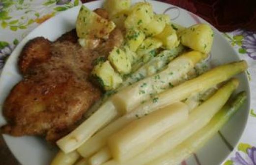 Zutaten für Personen Rezept mit Bild: Wiener Schnitzel mit Sahnekartöffelchen und Spargelgemüse nach Diana´s Art Bild einstellen 2 Schwein Kotelett (ma) frisch Salz ,Pfeffer 1 Ei 4 Esslöffel Semmelkru [...]