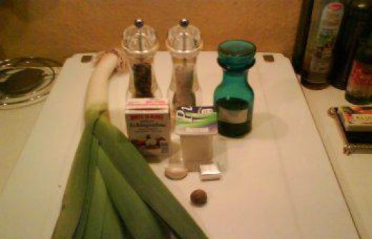 Zutaten für Personen Bild einstellen 0.5 L. Hühnerbouillon 1 Becher Sahne 1 Becher Crème fraîche 2 gr. Stangen Lauc/Porree 1 Zehe Knoblauch frisch Salz bunter Pfeffer, gemahlen 2 Eßlöffel Chiliöl frisch geri [...]