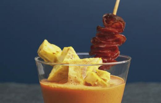 Tortilla auf Paprikaschaum Zutaten 250 g mehligkochende Kartoffeln 1 große Zwiebel 2 EL Olivenöl 3 Eier 1 Döschen gemahlener Safran (0,1 g) Salz schwarzer Pfeffer aus der Mühle 400 g rote Paprikaschoten 2 EL Olivenöl 50 ml Gemüsebrühe 1/2 TL mildes Paprikapulver 60 g Crèm [...]