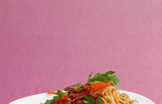 Asiatischer Nudelsalat Zutaten Salz 250 g Mie-Nudeln (chinesische Weizennudeln) 2 EL Limettensaft 2 EL süß-scharfe Chilisauce 4 EL helle Sojasauce 6 EL Öl 200 g Möhren 1 Gärtnergurke (ca. 250 g) 1 rote Paprikaschote 300 g Tatar Pfeffer 1 Bund Petersilie guk:similarity- [...]