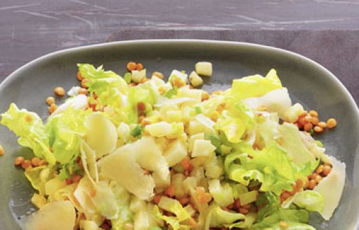 Linsensalat mit Sellerie Zutaten 200 g rote Linsen 250 g Knollensellerie 1 EL Butter Zucker Salz 75 ml Gemüsebrühe 3 EL Apfelessig Pfeffer 5 EL Olivenöl 3 Frühlingszwiebeln 300 g Endiviensalat 50 g Parmesan guk:similarity-keywords=""> 200 g rote Linsen , 250 [...]