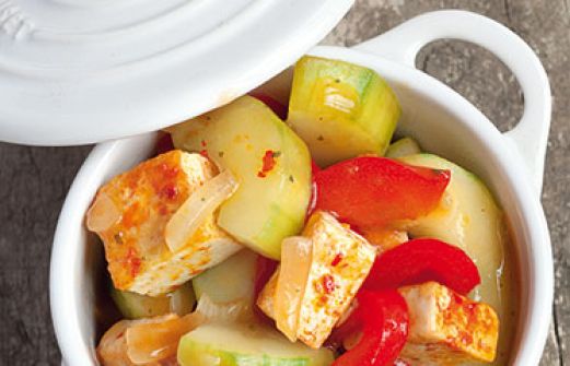 Tofu mit Gurken süss-sauer Zutaten 200 g Tofu 1 TL Sambal oelek 500 g Schmorgurken (ersatzweise Salatgurke) 1 rote Paprikaschote 1 kleine Zwiebel 2 EL Erdnussöl 100 ml Gemüsebrühe 1-2 EL Sojasauce 1-2 EL Obstessig 1 TL Zucker Salz Pfeffer 1 TL Speisestärke guk:similar [...]