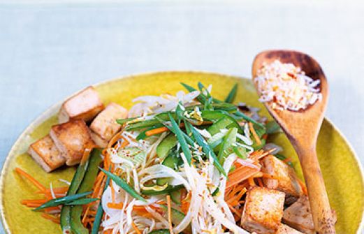 Sprossensalat mit Tofu und Sesam-Kokos-Streuseln Zutaten 200 g Tofu 2-3 EL helle Sojasauce 100 g Weißkohl Salz 1 grüne Paprikaschote 1 Möhre 2 Frühlingszwiebeln 100 g Sojasprossen 2 TL ungeschälter Sesam 2 TL Kokosraspel 1 TL gehackte Ingwerwurzel 1 Prise Cayennepfeffer [...]