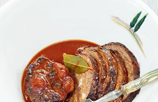 Rinderbraten »al Barolo« Zutaten 1,2 kg Rinderbraten 50 g Lardo (besonders gereifter fetter Speck) 2 Zwiebeln 3 Möhren 3 Knoblauchzehen 2 Stangen Staudensellerie 5 Nelken 5 schwarze Pfefferkörner 1 kleines Bund gemischte Kräuter (Salbei, Thymian, Rosmarin und glatte Peters [...]