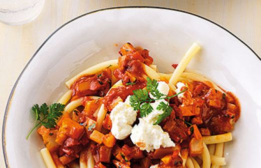 Makkaroni mit Gemüseragout Zutaten 300 g Hokkaidokürbis (ungeputzt ca. 350 g) 1 rote Paprikaschote 1 kleine Fenchelknolle 1 Knoblauchzehe 1 Zwiebel 1 Bund Kerbel 2 EL Olivenöl 2 EL heller Aceto balsamico 800 g stückige Tomaten (aus der Dose) 400 g Makkaroni Salz Pfeffer [...]