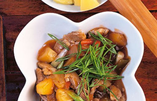 SCHWEINEFLEISCH SÜßSAUER Zutaten 1 kleine Dose Ananasstückchen (Abtropfgewicht 140 g) 2 Schweineschnitzel (à ca. 150 g) Salz Zucker 1 Knoblauchzehe 4 Frühlingszwiebeln 2 EL Öl 2-3 EL süßscharfe Chilisauce 1-2 EL Limettensaft 1 TL Sambal Oelek Cayennepfeffer guk:similarity [...]