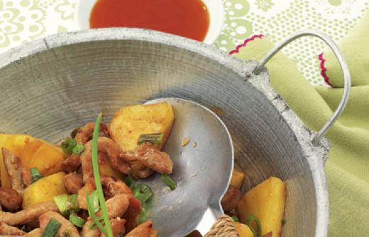 Schweinefleisch aus dem Wok Zutaten 4 Knoblauchzehen 2 EL Fischsauce 2 EL Zitronen- oder Limettensaft 600 g Schweinelende oder -filet 1 kleine Dose Ananasstücke (etwa 150 g Abtropfgewicht, am besten ohne Zucker) 1 Bund Frühlingszwiebeln 4 EL Öl 4 EL Sojasauce 1/8 l Fleisch- o [...]