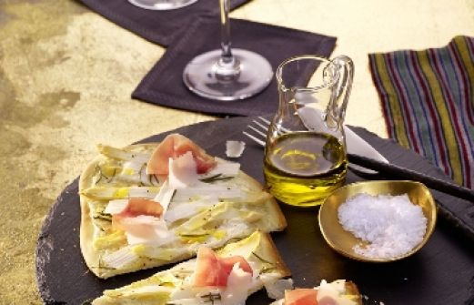 Spargelflammkuchen mit Serrano-Schinken Zutaten 10 g frische Hefe 250 g Mehl 1/2 TL Salz 100 ml Buttermilch 4 EL Olivenöl 400 g weißer Spargel 2 Zweige Rosmarin 40 g ital. Hartkäse 150 g Crème fraiche schwarzer Pfeffer (frisch gemahlen) grobes Meersalz 12 Scheiben Serrano-Sc [...]