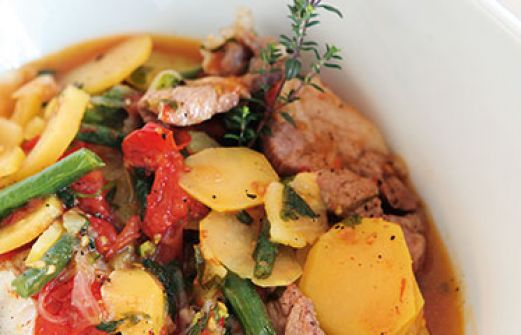 Lamm-Kartoffel-Topf Zutaten 200 g rohe Kartoffeln 50 g Schalotten 150 g Bohnen 150 g Kirschtomaten 4 Stängel Petersilie 1 Zweig Thymian 1 Knoblauchzehe Salz Pfeffer Zucker 1/4 l Geflügelbrühe 200 g Lammschulter oder -keule ohne Knochen 150 ml Tomatensauce 2 EL Oliven [...]