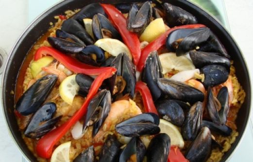 Menge Zutat 1 Hähnchen 6 EL Olivenöl 300 g Tintenfischringe 300 g Garnelen 300 g Miesmuscheln 400 g Reis [...]