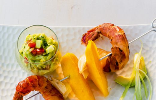 Gambas mit Guacamole Zutaten 250 g rohe Garnelen (TigerPrawns, frisch oder TK) 1 Zwiebel 1 Mango 1 Tomate 1/4 Salatgurke (50 g) 1 Limette 1 Avocado 1 TL gehacktes Koriandergrün Salz Zucker Chilipulver 2 EL Olivenöl 2 Knoblauchzehen 4 lange Holzspieße 2 EL Erlenmehl [...]