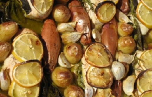 Zutaten für Personen Bild einstellen 1 Stück Hähnchen / Poularde oder 6 Stück Hähnchenbrust mit Haut 1 Pfund Schalotten mit Schale 25 Zehen Knoblauch - 2 Knollen mit Schale Rosmarin frisch Salbei frisch 1 Stück Zitro [...]
