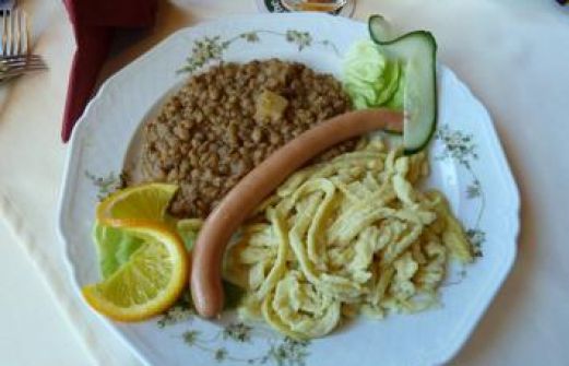 Zutaten für Personen Rezept mit Bild: Handgeschabte Spätzle mit Linsen und Saitenwurst Bild einstellen Spätzle RZ i. KB 3 Stück Saitenwürste 400 Gramm Linsen - gequollen - 1 kleine Möhre 1 kleine Zwiebel [...]