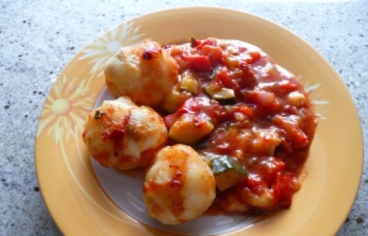Zutaten für Personen Rezept mit Bild: Knödel mal anders Bild einstellen 1 Paket Knödelteig aus dem Kühlregal 4 rote Paprika in Würfe 1 Zwiebel gewürfelt 1 Zucchini in Würfeln 1 El Brühe gekörnt 1 Fla [...]