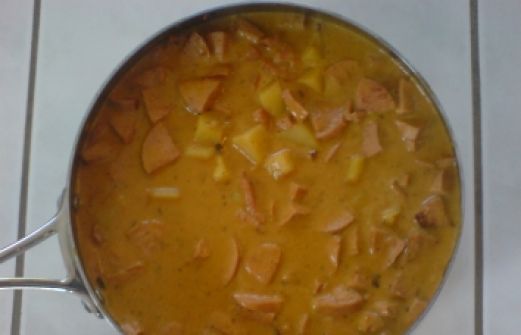 Zutaten für Personen Bild einstellen 1 Ring Fleischwurst 6 - 8 mittelroße bis größere Kartoffeln 1 Zwiebel 1 Becher Sahne Salz, Pfeffer, Paprika ca. 500 - 750 ml Gemüsebrühe 1 - 2 EL Mehl Rezept Zube [...]