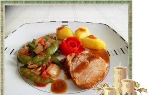 Zutaten für Personen Rezept mit Bild: Kalbsbraten mit Mini Knackerbsen und tournierten Kartoffeln dazu Bild einstellen Für das Gemüse: 100 g Mini Knackerbsen 1 Zwiebel 1 Rote Pflaumentomate [...]