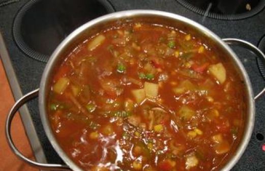Zutaten für Personen Rezept mit Bild: Kartoffelgulasch Bild einstellen 5 große Kartoffeln 3 Stk. Zwiebeln 1 Stk. Stange/n Porree 1 roter Paprika 1 Dose Mais 150 Gramm Champignons frisch 200 Gramm E [...]