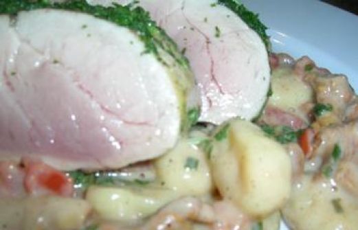 Zutaten für Personen Rezept mit Bild: Rosa pochiertes Schweinefilet im Kräutermantel auf Pfifferling-Gnocchi Ragout Bild einstellen 1 Stück Schweinefilet Fleur de Sel, weißer Pfeffer 1 EL Olivenöl [...]