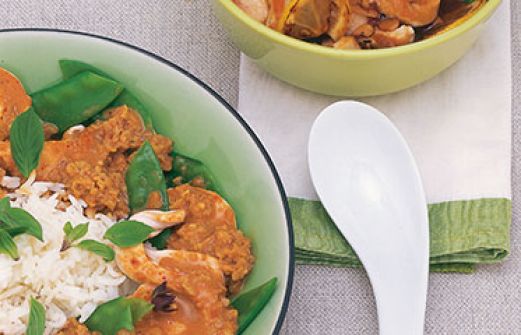 Pute mit Erdnuss-Sauce Zutaten 250 g Zuckerschoten Salz 700 g Putenbrustfilets 125 g gesalzene geröstete Erdnusskerne 200 ml Kokosmilch 3 TL Sambal oelek 2 TL Zucker 1 ½ EL Kecap manis (süße Sojasauce) 1 ½ EL Limettensaft 2 EL Öl 4 Stängel Thaibasilikum guk:similarity-key [...]