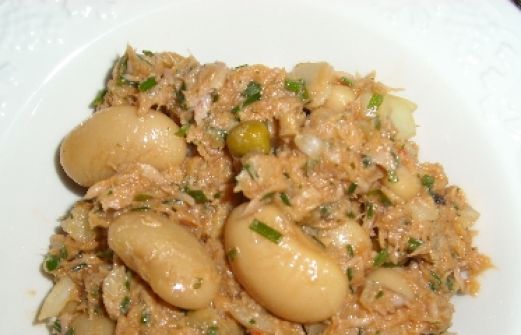 Dicke - Bohnen - Salat á la Greek Zutaten 2 Dosen Riesen Bohnen ( Grieschische Art ) 1 Dose Thunfisch in Oel 1 Dose Thunfisch Snack Tomate Schnittlauch Allarabiata Gewürz Pfeffer und Salz Knoblauch Basalmicoessig 1 Zwiebel 1 Päckchen Salatkrönung mit Knoblauch Olivenöl mit K [...]