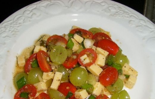 Weintrauben - Käse - Olivensalat Zutaten Weintrauben kl. ohne Kerne halbieren Gouda Käse in kleine Stücke schneiden Oliven kleinschneiden Zwiebeln saure Gurken kleinschneiden 1 Bund Zwiebellauch Babytomaten halbieren Oel, Essig, Gurkenwasser, Salz und Pfeffer Tomatengewürz, Gewü [...]
