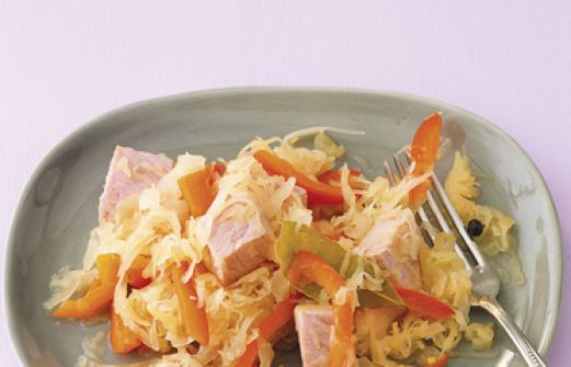 Kassler auf Paprika-Sauerkraut Zutaten 2 rote Paprikaschoten 2 Zwiebeln 4 TL Rapsöl 400 g Sauerkraut 6 Wacholderbeeren 1 Lorbeerblatt 100 ml Apfelsaft 300 g mageres Kassler Salz, Pfeffer guk:similarity-keywords=""> 2 rote Paprikaschoten , 2 Zwiebeln , 4 TL Ra [...]