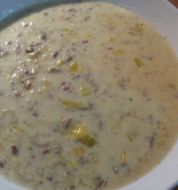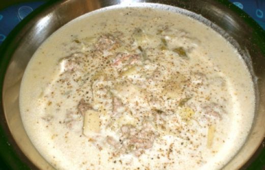 Menge Zutat 1 kg Hackfleisch 1 kg Porree 2 Pk Schmelzkäse a\' 200g (1x Sahne, 1x Kräuter) etwas Salz, Pfeffer 2 St Brühwürfel class="r [...]