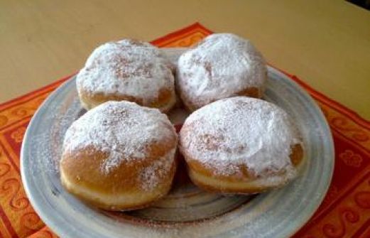 Zutaten für Personen Bild einstellen 500 gr Mehl 1 Päckchen Frischhefe oder 2 Päckchen Trockenhefe 0.25 l Milch 3 Eigelb 2 Eier 60 gr Butter 60 gr Zucker 1 TL Salz Marmelade zum Füllen Fritierfett [...]
