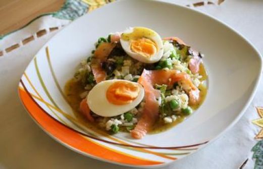 Zutaten für Personen Bild einstellen 100 g Erbsen 200 g Reis Salz 6 Eier 1 Radicchio 150 g Lachs geräuchert 4 EL Honig flüssig 2 EL Senf mittelscharf 2 EL Zitronensaft 4 EL Öl 0.5 Bd Dill [...]