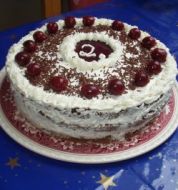Zutaten für Personen Rezept mit Bild: Schwarzwälder Kirschtorte Bild einstellen 6 Eier 200 g Zucker 1 Pkg. Vanillezucker 200 g Mehl 40 g Maizena, Speisestärke 0.5 TL Backpulver 40 g Kakaopulver [...]