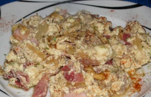 Menge Zutat 35 g Zwiebel 20 g Fettreduzierte Salami 40 g gekochter Schinken 130 g Eiweiß ( frisch ) 1 Schb Goudakäse 16% Fett 1 EL [...]